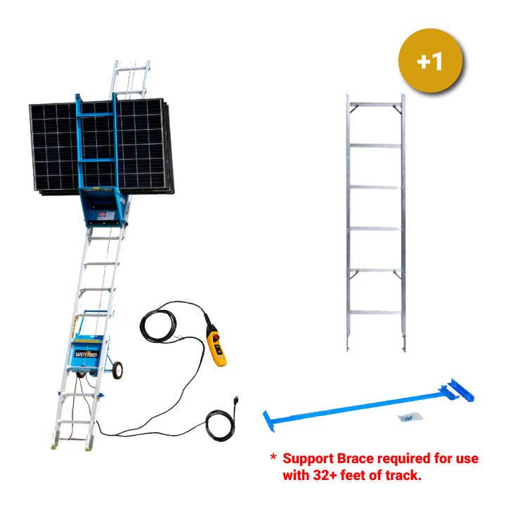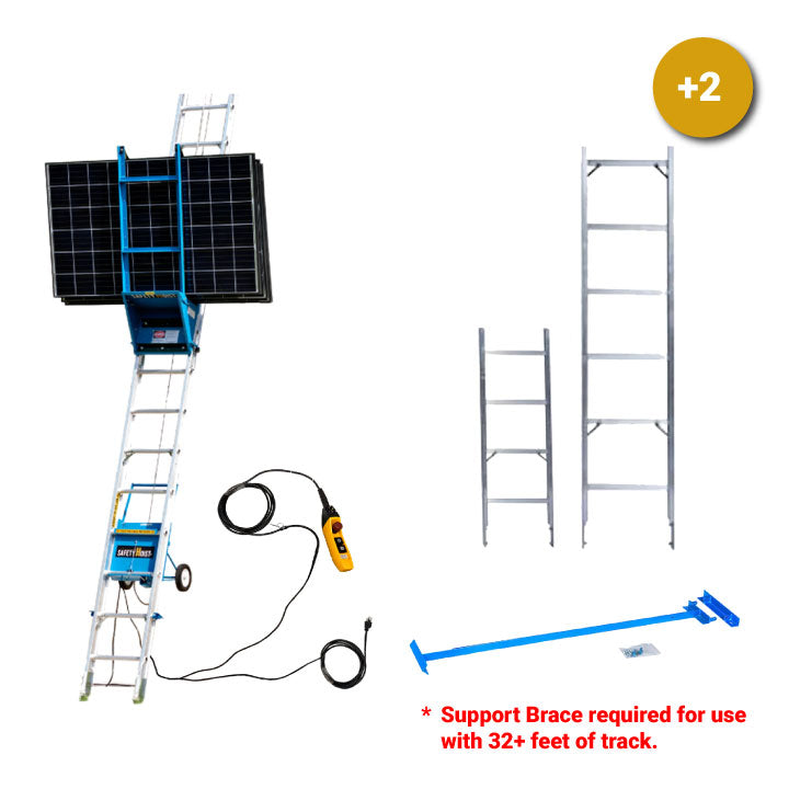 The fully-electric SPH-250 was manufactured to help solar installers work safer and more efficiently. Capable of lifting up to 250 lbs. worth of panels in one run, this model significantly speeds up installations.