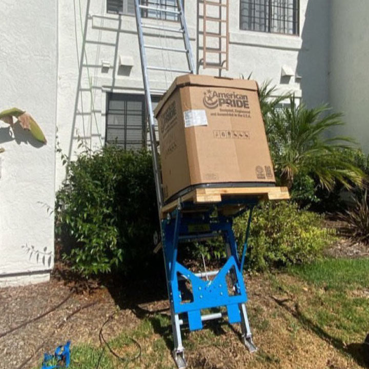 A two person crew could set it up in under 15 minutes and lift 500 lbs. of material at a time.